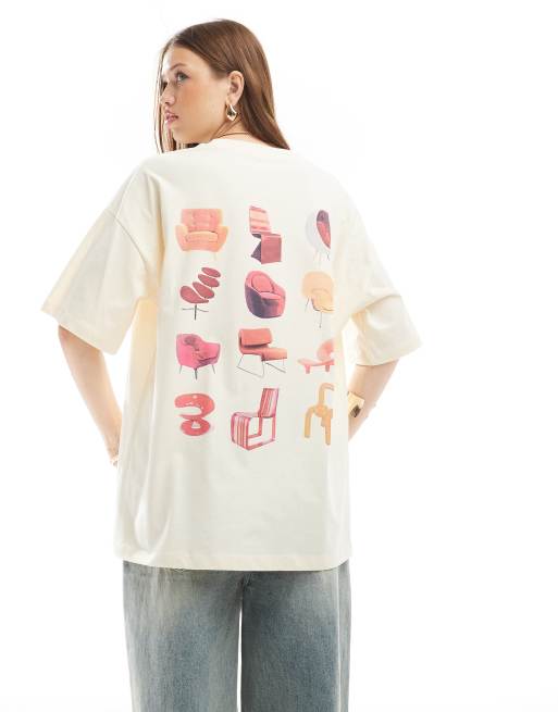 Camiseta marrón extragrande con estampado gráfico de mobiliario de los años 70 de ASOS DESIGN