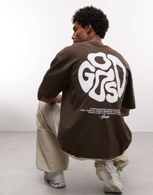 Camiseta marrón extragrande con texto en relieve de ASOS DESIGN