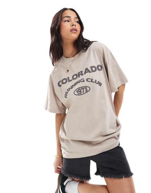 Camiseta marrón topo extragrande con estampado gráfico "Colorado Running" de ASOS DESIGN