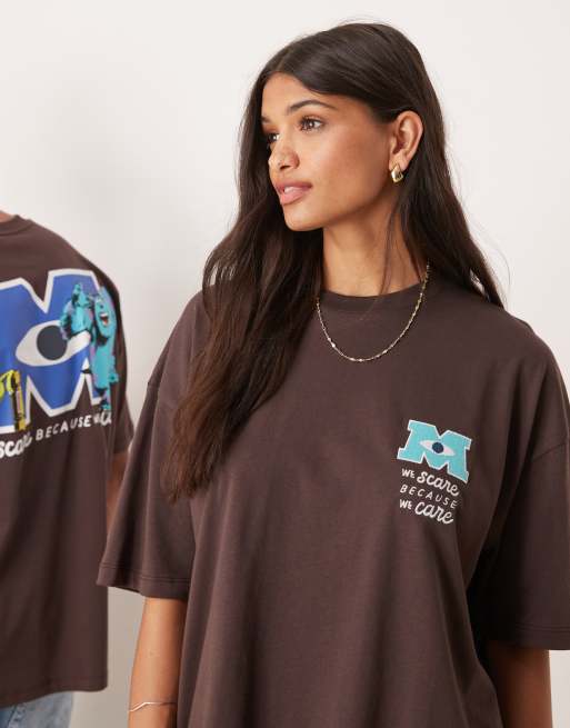 Camiseta marrón unisex extragrande con estampado de "Monsters Inc" de Disney Pixar de ASOS DESIGN