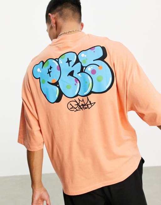 Camiseta naranja extragrande con estampado de graffiti en la espalda de ASOS DESIGN