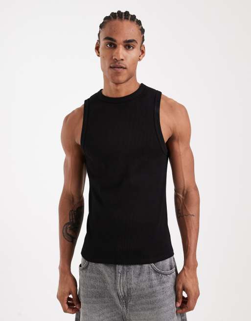 Camiseta negra ajustada sin mangas de tejido acanalado muy grueso de ASOS DESIGN
