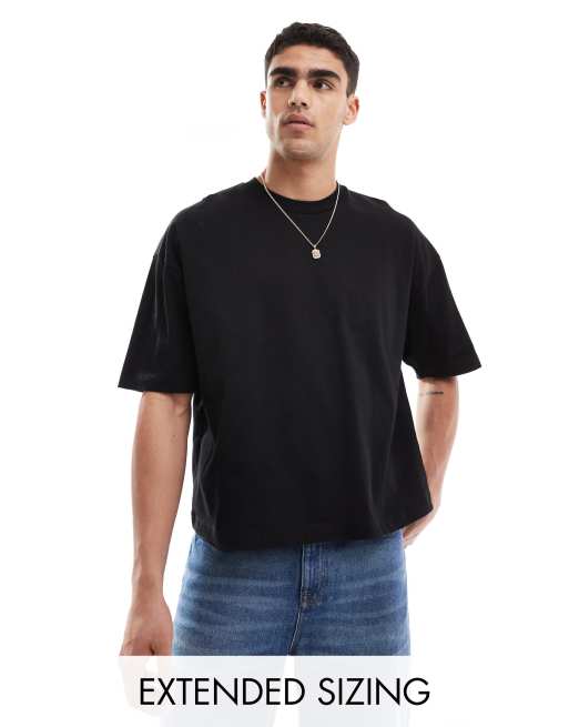 Camiseta negra básica de corte cuadrado extragrande de tejido grueso de 240 g/m2 de ASOS DESIGN