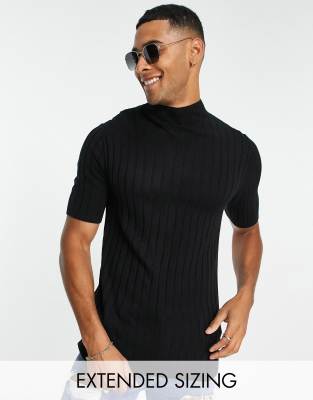 Camiseta negra con cuello alzado de punto de canalé de ASOS DESIGN