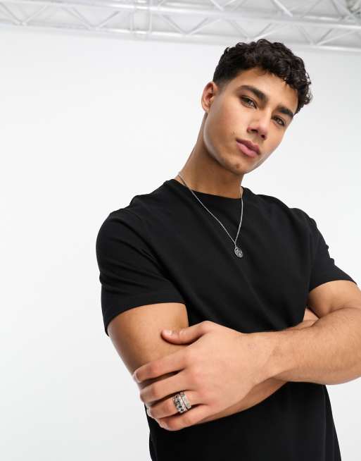 Camiseta negra con cuello redondo de piqué de ASOS DESIGN
