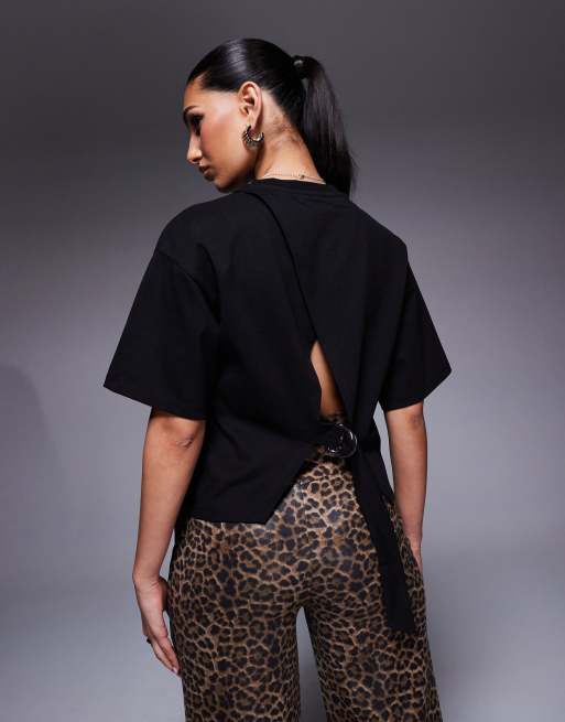 Camiseta negra con espalda abierta entallada y detalle de anilla semicircular de ASOS DESIGN