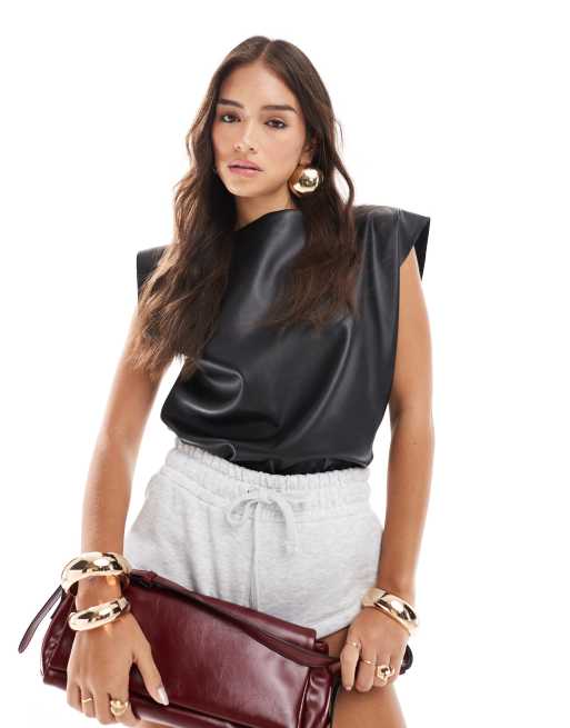 Camiseta negra con mangas de casquillo de poliuretano de ASOS DESIGN