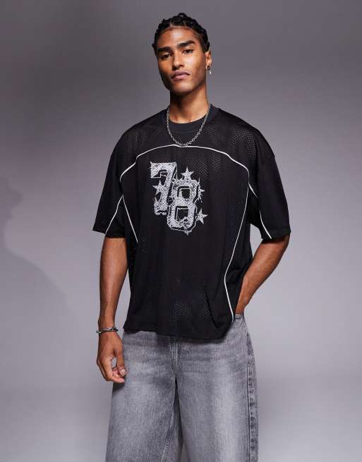 Camiseta negra de corte cuadrado extragrande con detalle de ribete y estampado gráfico de número de Airtex de ASOS DESIGN