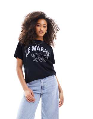 Camiseta negra de corte estándar con estampado gráfico "Le Marais" de ASOS DESIGN