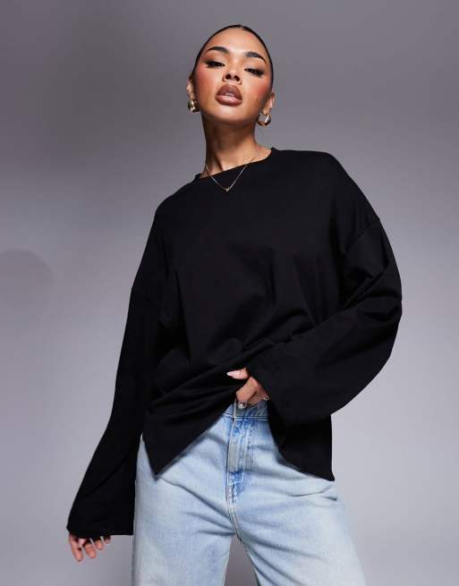 Camiseta negra de manga larga con detalle anudado en la espalda de ASOS DESIGN