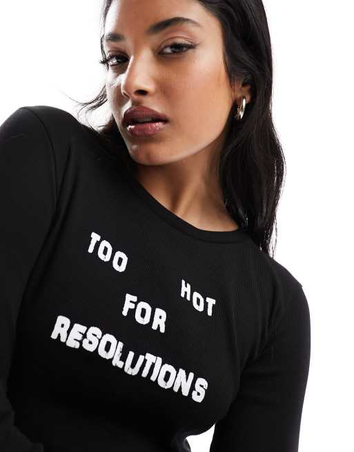 Camiseta negra de manga larga con diseño encogido y estampado gráfico "Too Hot For Resolutions" de ASOS DESIGN
