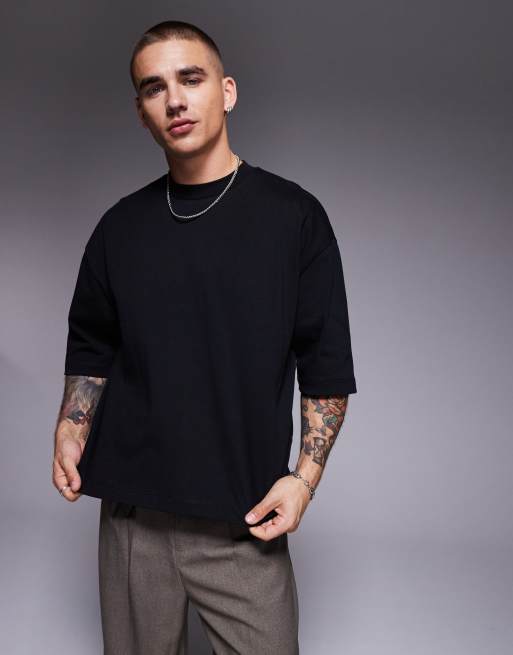 Camiseta negra de media manga y corte cuadrado extragrande de tejido grueso de ASOS DESIGN