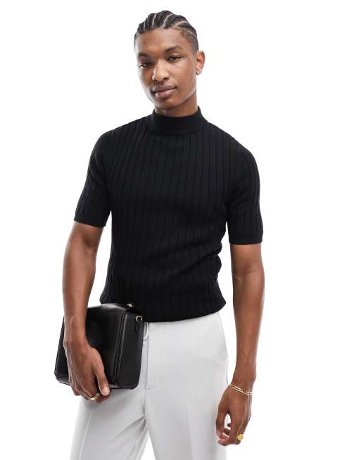 Camiseta negra entallada con cuello alzado de punto acanalado ligero de ASOS DESIGN