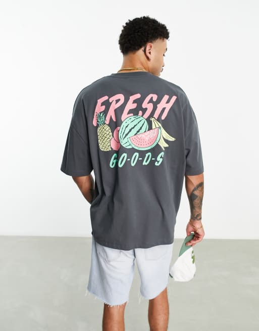 Camiseta negra extragrande con estampado de fruta fresca en la espalda de ASOS DESIGN