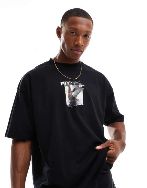 Camiseta negra extragrande con estampado delantero de ASOS DESIGN
