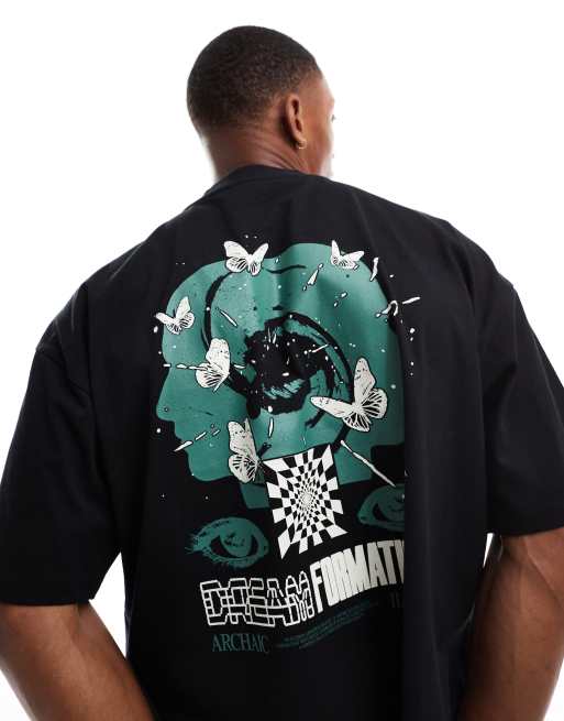 Camiseta negra extragrande con estampado en la espalda de ASOS DESIGN