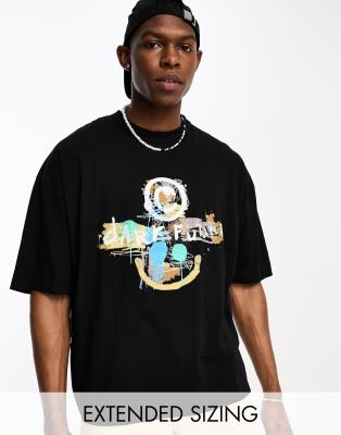 Camiseta negra extragrande con estampado estilo grafiti en el pecho de ASOS Dark Future