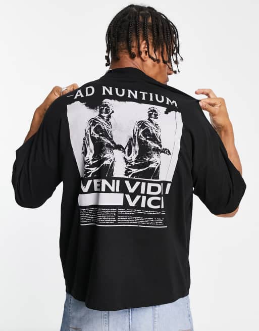 Camiseta negra extragrande con estampado fotográfico de estatua en la espalda de ASOS DESIGN