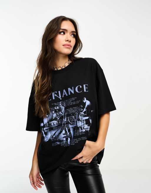 Camiseta negra extragrande con estampado gráfico "Defiance" de ASOS DESIGN