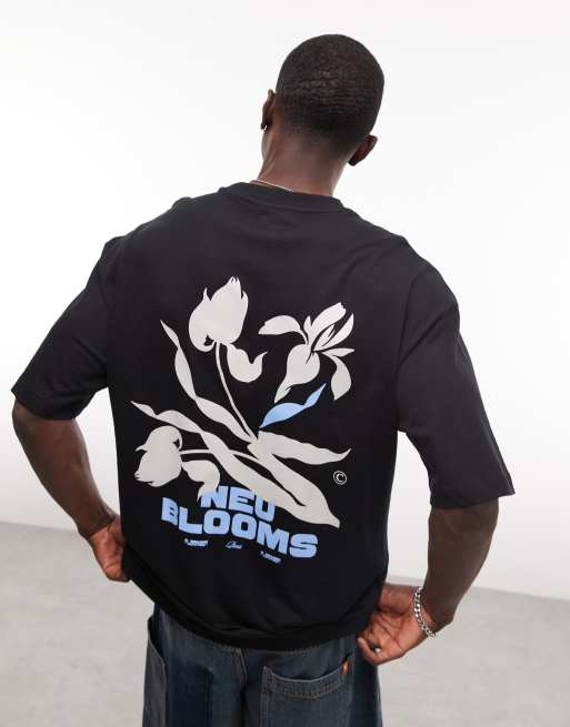 Camiseta negra extragrande con estampado gráfico floral de ASOS DESIGN.