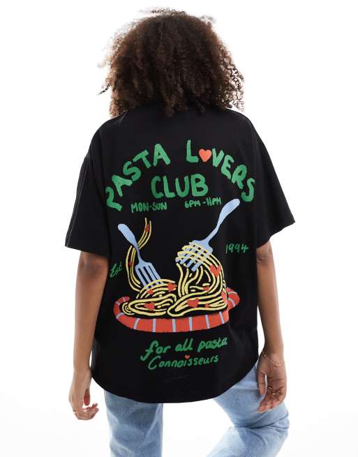 Camiseta negra extragrande con estampado gráfico "Pasta Lover" de ASOS DESIGN