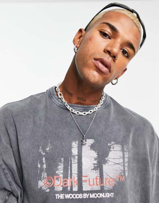 Camiseta negra extragrande con lavado negro y estampado fotográfico delantero y texto en la espalda de ASOS Dark Future