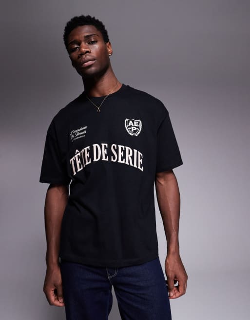 Camiseta negra extragrande con texto deportivo bordado de ASOS DESIGN