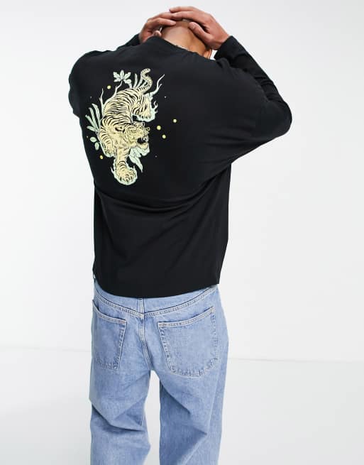Camiseta negra extragrande de manga larga con estampado de tigre en la espalda de ASOS DESIGN