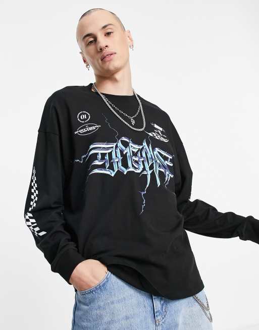 Camiseta negra extragrande de manga larga con estampado "Gaming" en el pecho y las mangas de ASOS DESIGN