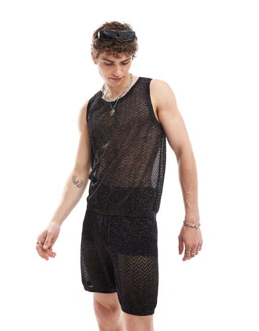Camiseta negra sin mangas de malla de punto metalizado de ASOS DESIGN (parte de un conjunto)