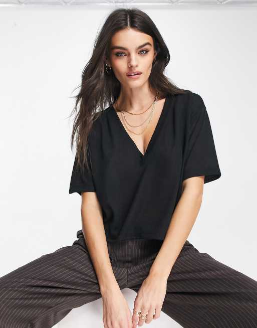 Camiseta negra texturizada con cuello de pico de ASOS DESIGN