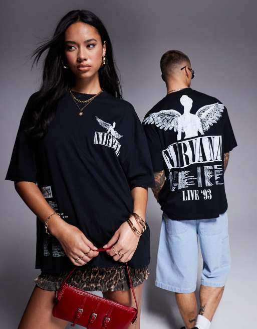 Camiseta negra unisex extragrande con estampado con licencia del tour de Nirvana de ASOS DESIGN
