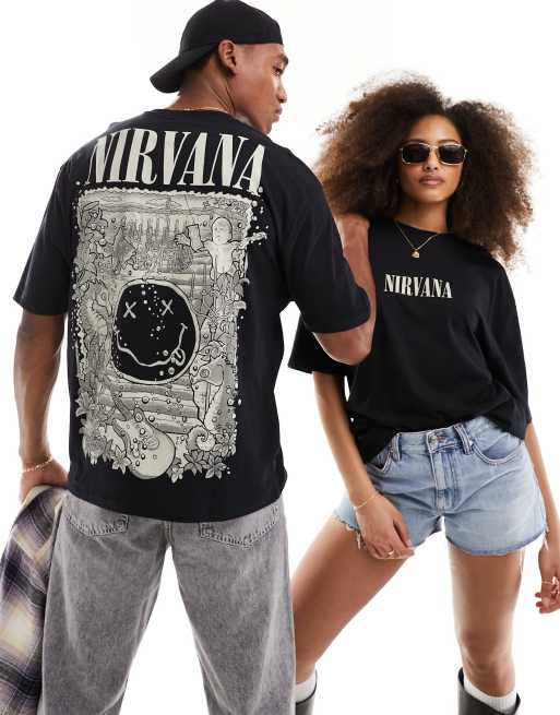 Camiseta negra unisex extragrande con estampados de Nirvana de ASOS DESIGN