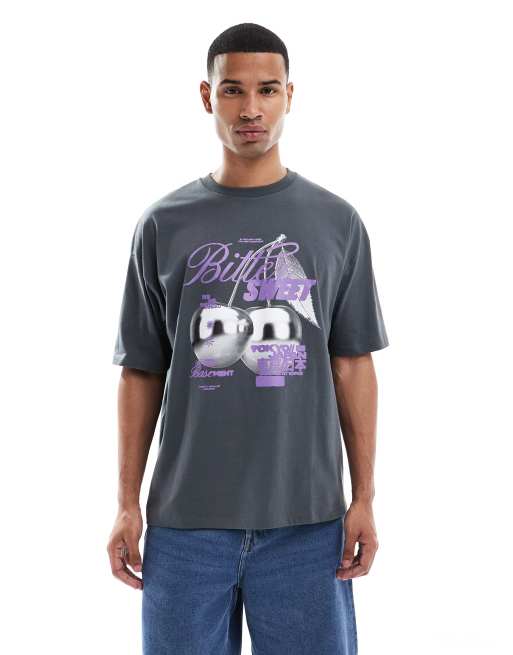 Camiseta negro lavado extragrande con estampado gráfico de ASOS DESIGN