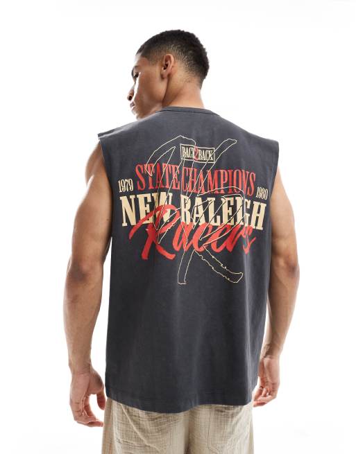 Camiseta negro lavado sin mangas extragrande con estampado gráfico deportivo de tejido grueso de ASOS DESIGN