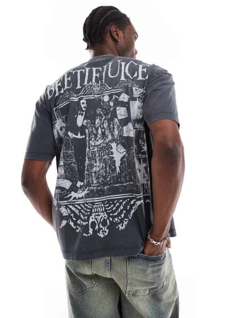 Camiseta negro lavado unisex extragrande con estampado de "Beetlejuice" para Halloween de ASOS DESIGN