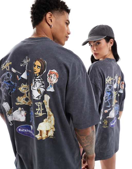 Camiseta negro lavado unisex extragrande con estampados de "Ratatouille" de Disney Pixar de ASOS DESIGN