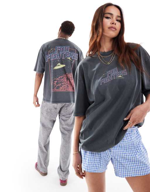 Camiseta negro lavado unisex extragrande con estampados gráficos con licencia del grupo Foo Fighters de ASOS DESIGN