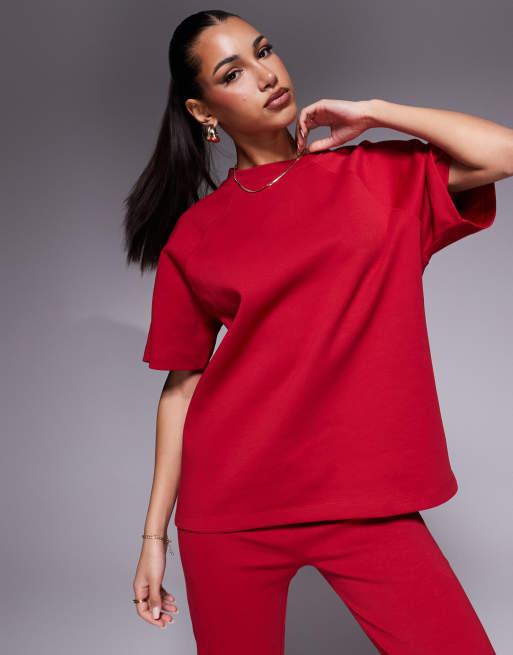 Camiseta roja con mangas raglán de punto entrelazado de ASOS DESIGN (parte de un conjunto)