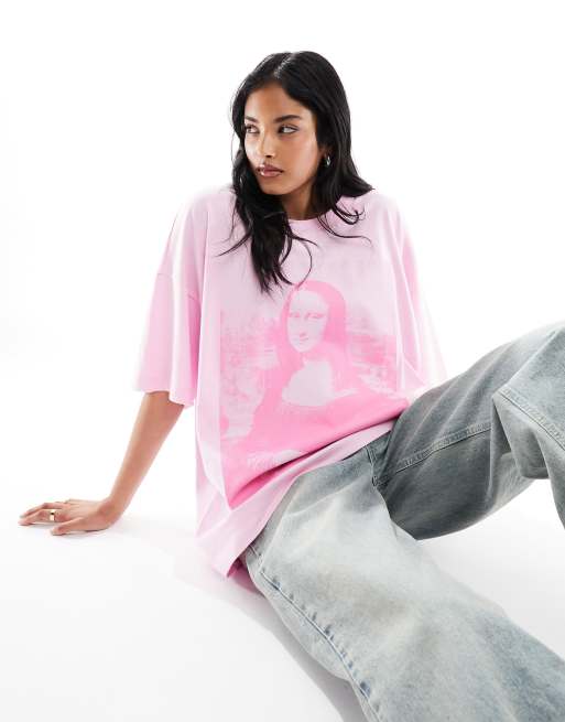 Camiseta rosa extragrande con estampado gráfico con licencia de Mona Lisa de ASOS DESIGN