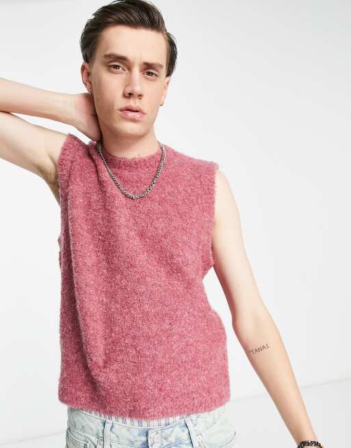 Camiseta rosa sin mangas con diseño encogido de tejido texturizado de ASOS DESIGN