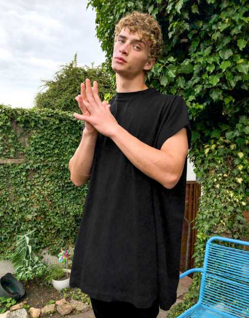 Camiseta sin mangas larga y extragrande en negro de ASOS DESIGN