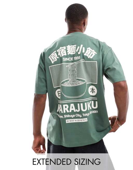 Camiseta verde extragrande con estampado en la espalda de ASOS DESIGN