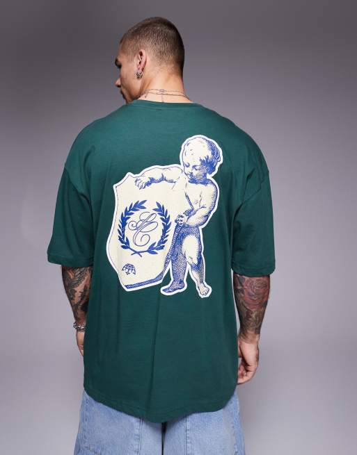 Camiseta verde extragrande con estampado gráfico de querubín de ASOS DESIGN