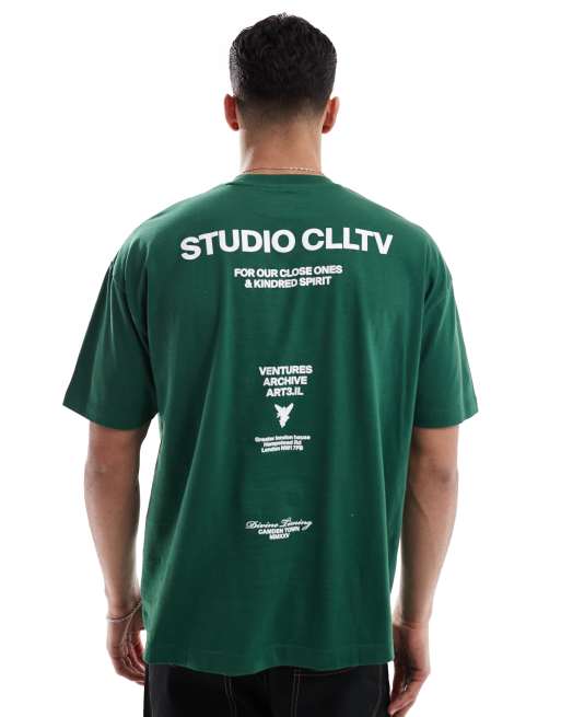 Camiseta verde extragrande con estampado gráfico de texto en la espalda de ASOS DESIGN