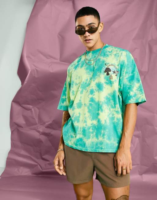 Camiseta verde extragrande de efecto tie dye con estampado de setas en el pecho de ASOS DESIGN