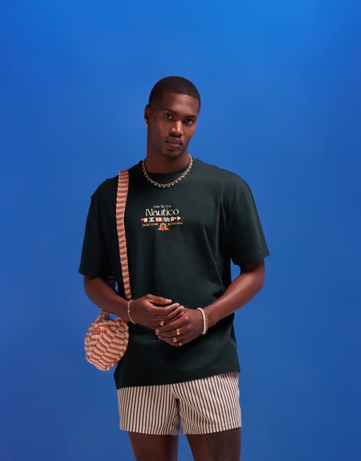 Camiseta verde oscuro holgada con estampado de texto en el pecho de ASOS DESIGN