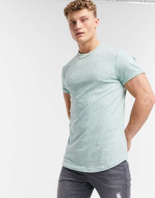 Camiseta verde pastel de tejido jaspeado con mangas vueltas de ASOS DESIGN