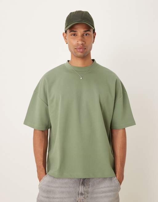 Camiseta verde salvia de corte cuadrado extragrande con hombros caídos de tejido grueso de mezcla de algodón breatheMAX™ de ASOS DESIGN