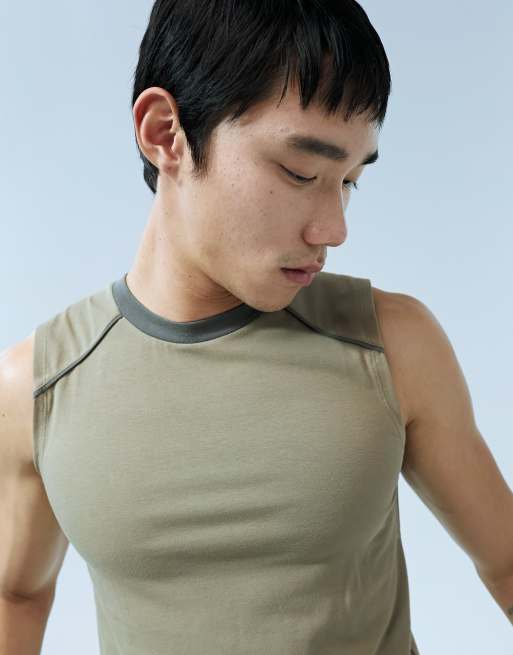 Camiseta verde sin mangas con detalle de costuras de ASOS DESIGN